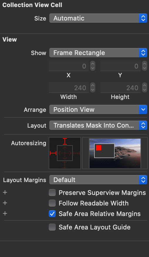 CollectionViewCell を見ると Size: Automatic となっているので、